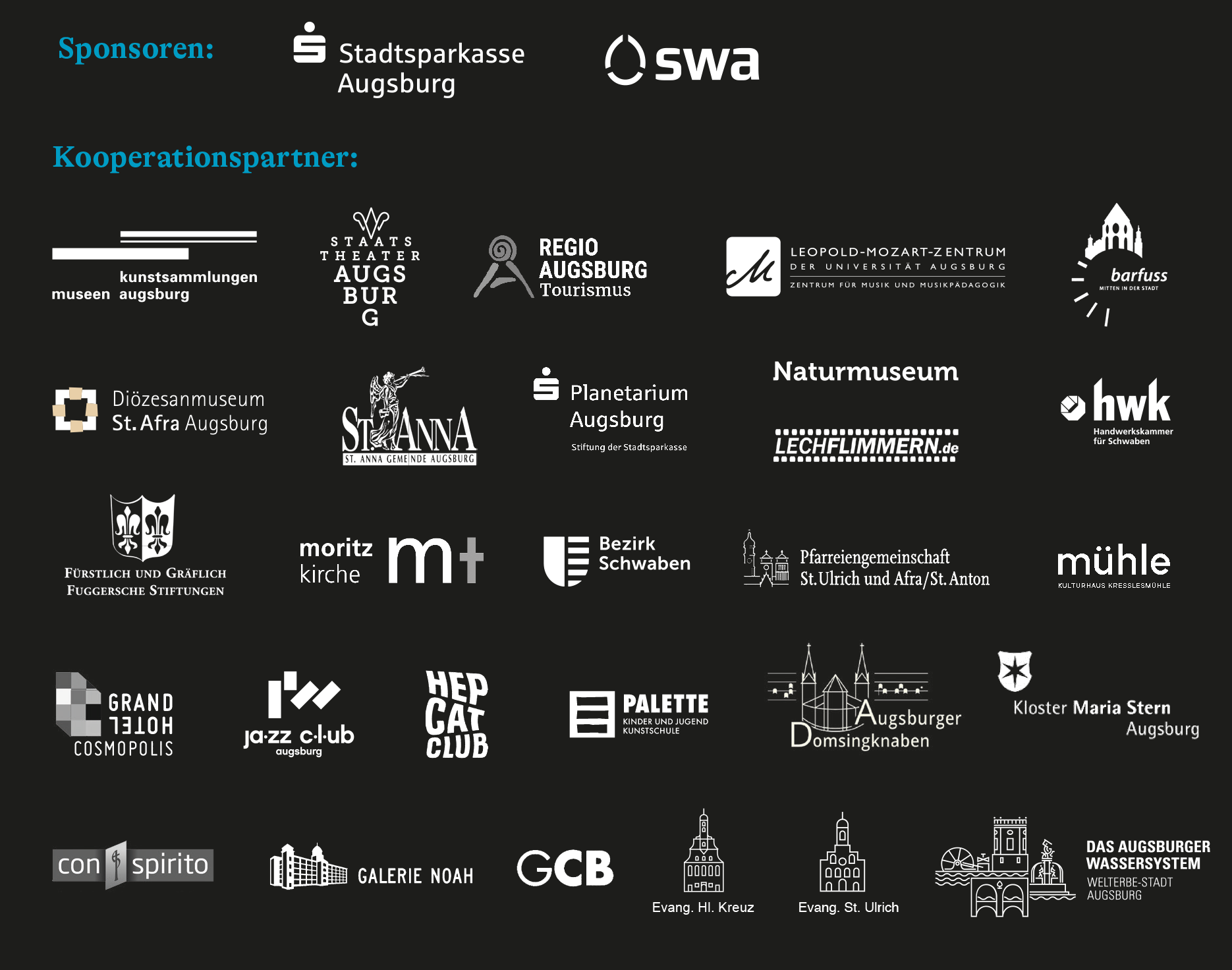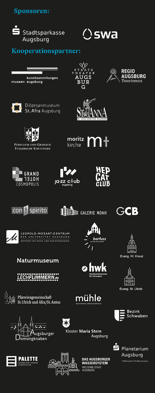 Es gibt auch an der Abendkasse im Rathaus, Kleinem Goldenen Saal, in der Kresslesmühle, St. Anna (Kreuzgang), Evang. St. Ulrich, im Maximilianmuseum und im Schaezlerpalais Tickets zum Abendkassenpreis.