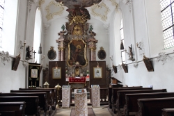 Dominikanergasse 5Die kleine Kapelle des St. Antonius (auch: St. Anton) wurde 1410 der Antonspfründe gestiftet und dem heiligen Einsiedler Antonius geweiht. Im Kern wurde sie 1589 verändert, 1746 neu ausgestattet und 1988/89 restauriert. Deckenfresken und Altarblatt stammen von Matthäus Günther und J.M. Feichtmayr. In der Mitte des Kirchenschiffes befindet sich ein Wappengrabstein der Stifter Lorenz Egen und Ulrich Wolfartshauser. Seit 1813 befindet sich die Kappelle im Besitz der Stadt und wird nur gelegentlich genutzt.