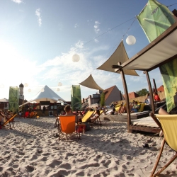 Der höchste Strand Augsburgs liegt inmitten der Innenstadt. Rund 30 Tonnen weißer Sand zieren Sommer um Sommer das Dach des Parkhauses in der Ludwigstraße. Die kleine Strandoase gibt es bereits seit elf Jahren.
